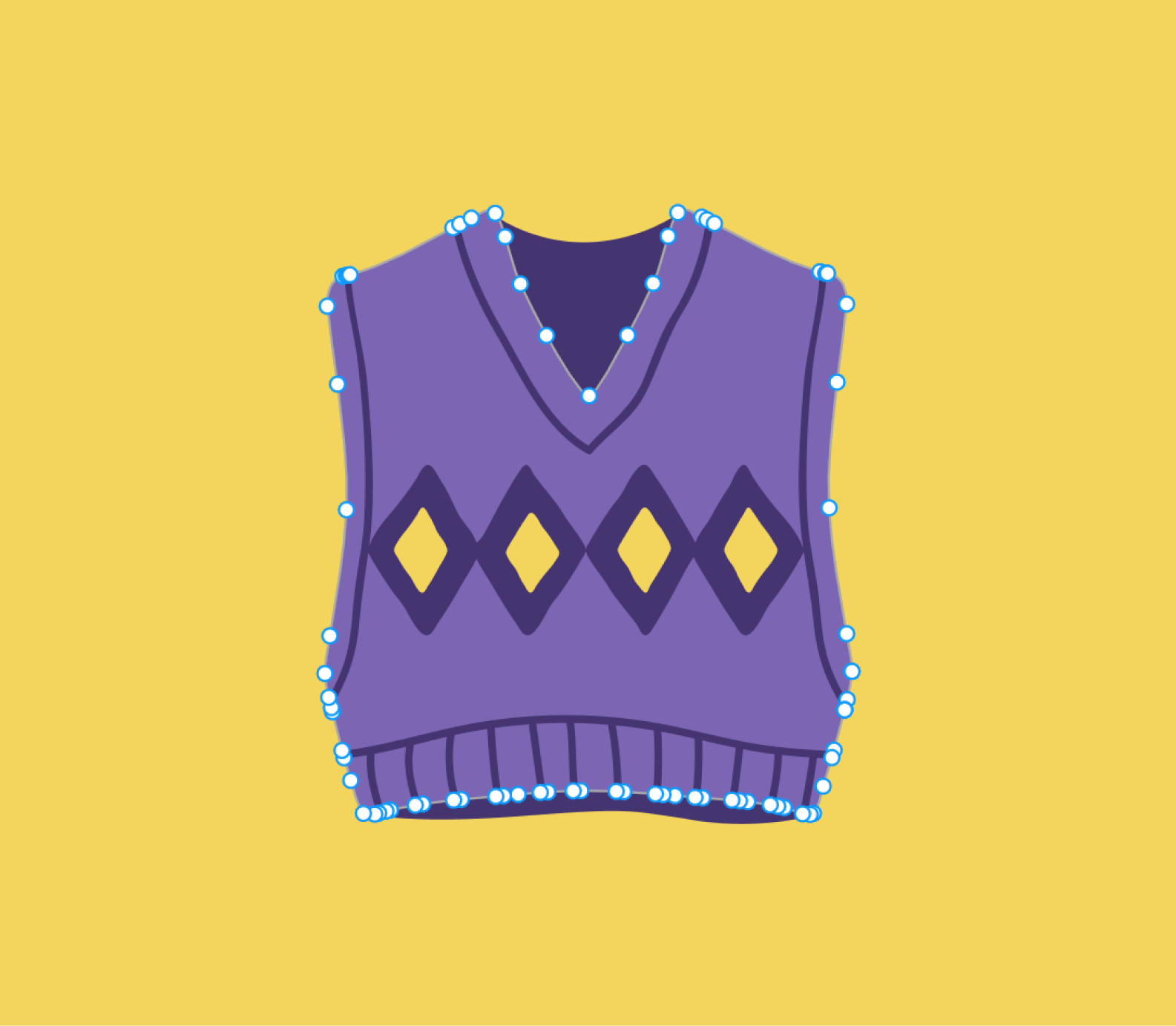 Here’s a sketch from a typical scenario: your Norwegian grandpa has launched an online shop. But the illustrated vest is made up of too many vector points, probably from some auto-trace action back in the days. Anyhow: it could definitely use a cleanup.