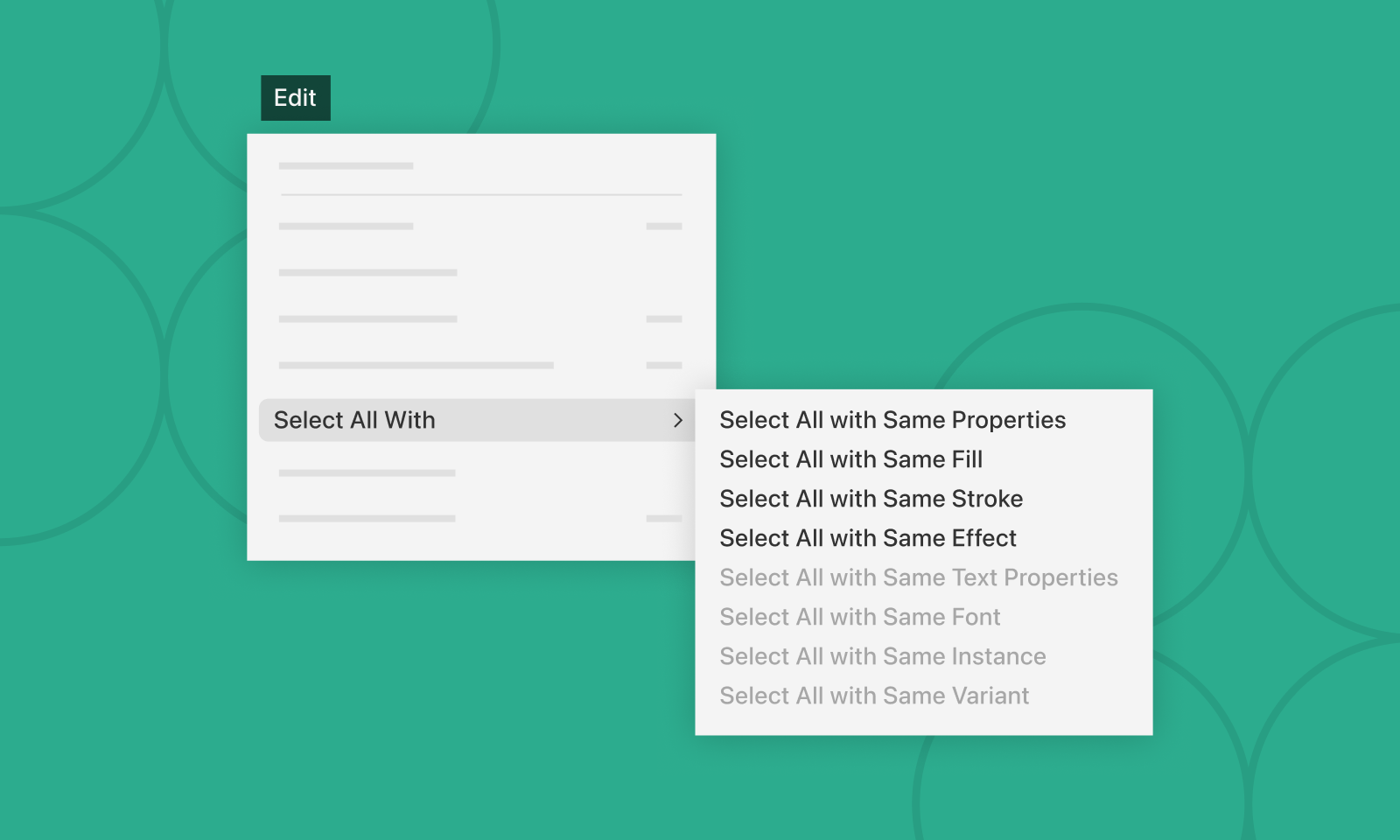 Let’s say you skipped the whole component thing and just made a bunch of identical objects scattered around. You can select everything that shares the same properties—like all delete buttons with a red outline, or track down (and remove) those questionable gradients someone in finance thought looked nice.