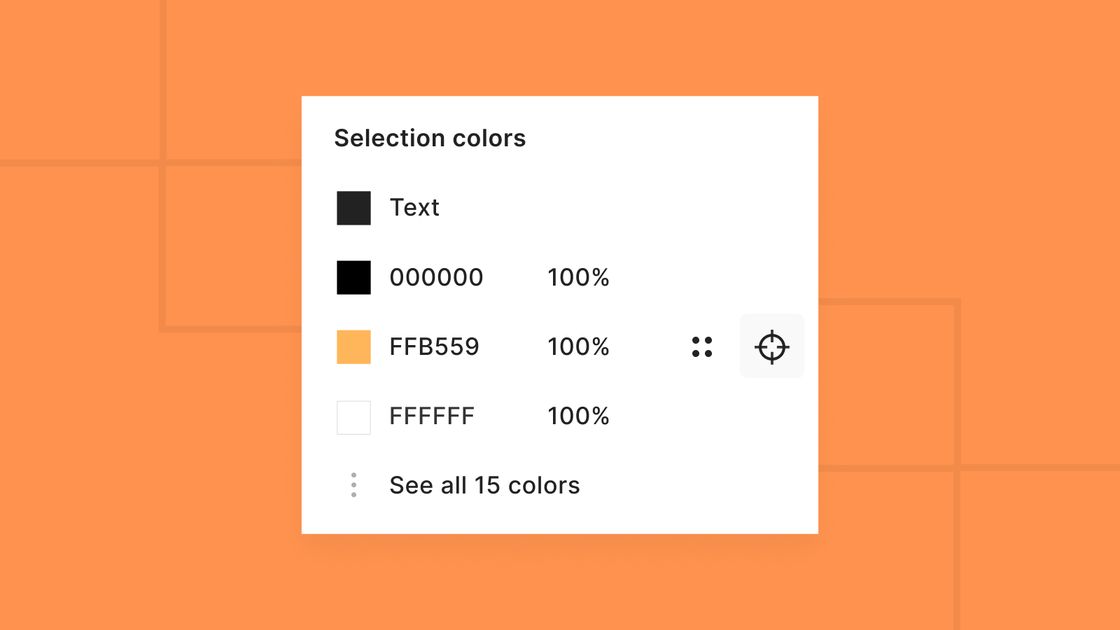 Want to select all objects with a specific color? Hover over the color and click the target icon.
