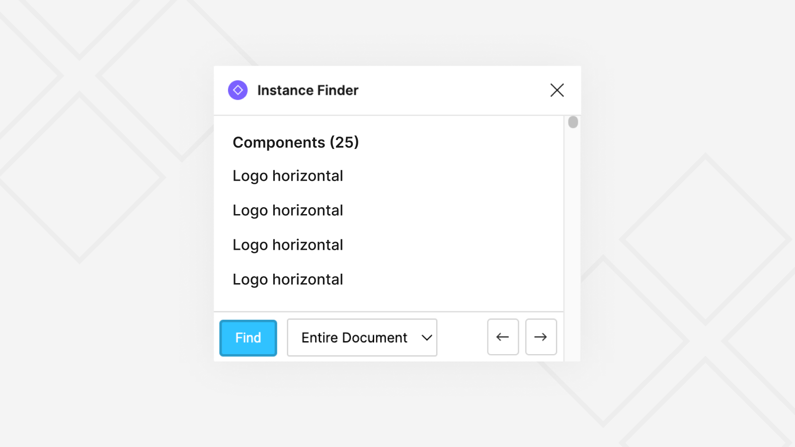 Download Instance Finder, select a component or instance, and you’ll see all the places it’s used. You can search within a page or across the entire file.